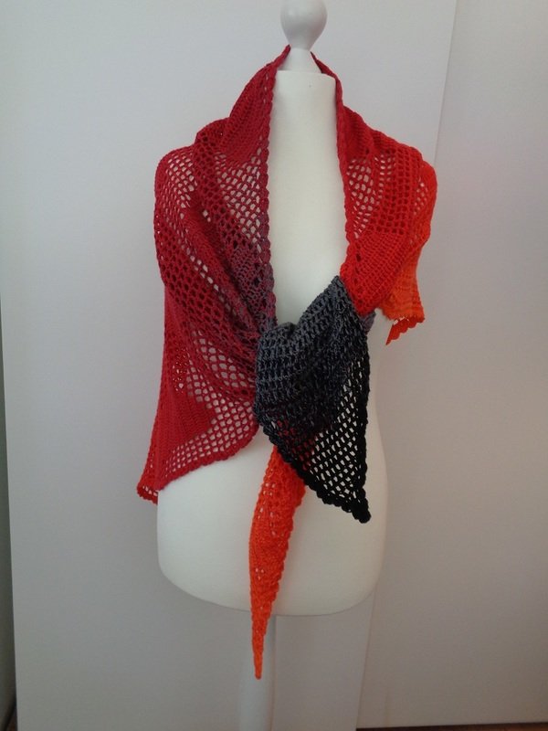 Vulkane, Magma, Lava – das sind die Stichworte, die dieses fantastische Häkeltuch kennzeichnen!
