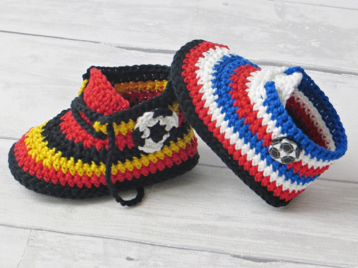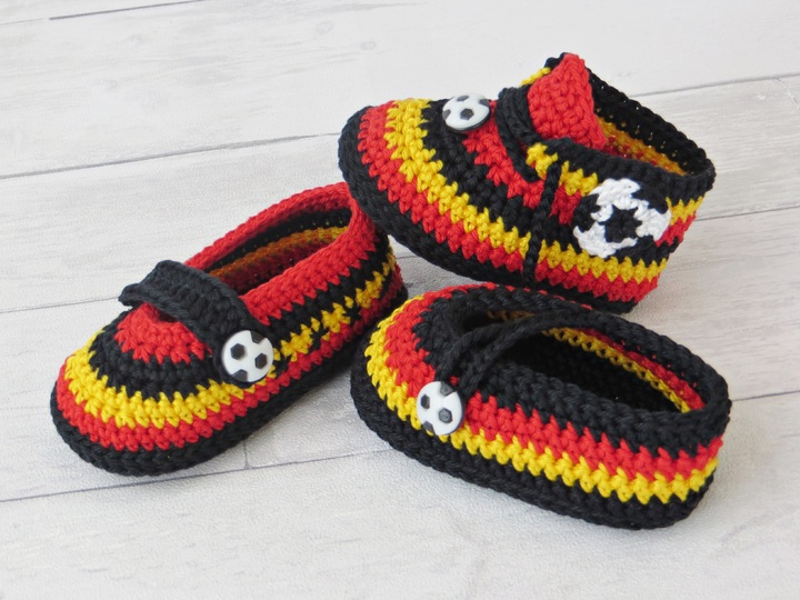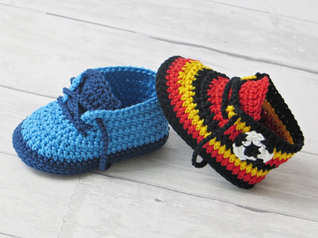 Häkelanleitung, Fan-Schuhe für Babys, verschiedene Varianten und in 4 Größen