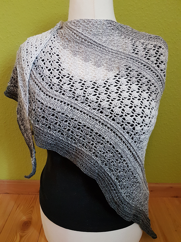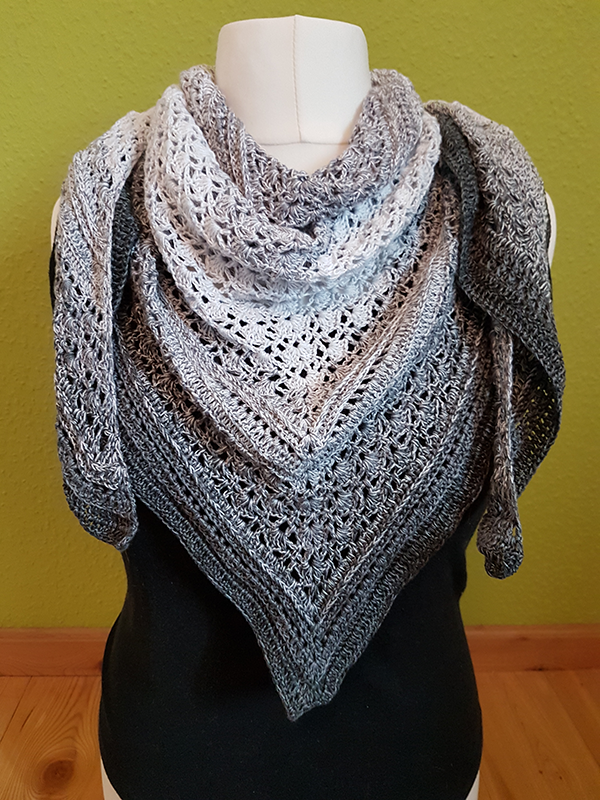 Das von mir gehäkelte Tuch hat eine Spannweite von 175cm