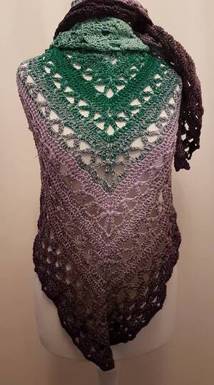 Ich habe für das Tuch etwa 1000 m 3-fach gefachtes Garn mit einer Nadelstärke 3,5 gehäkelt. Fortgeschrittene Grundkenntnisse beim Häkeln sollten vorhanden sein.