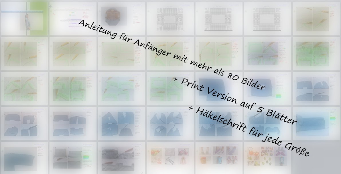 Häkelanleitung beschreibt detailliert mit ausführlichen Erklärungen und ca. 80 anschaulichen Bildern den Weg bis zur fertige Pullover. Die Datei ist im PDF-Format, es gibt also keine Probleme beim Öffnen. Dabei auch Häkelschrift für jede Größe.
