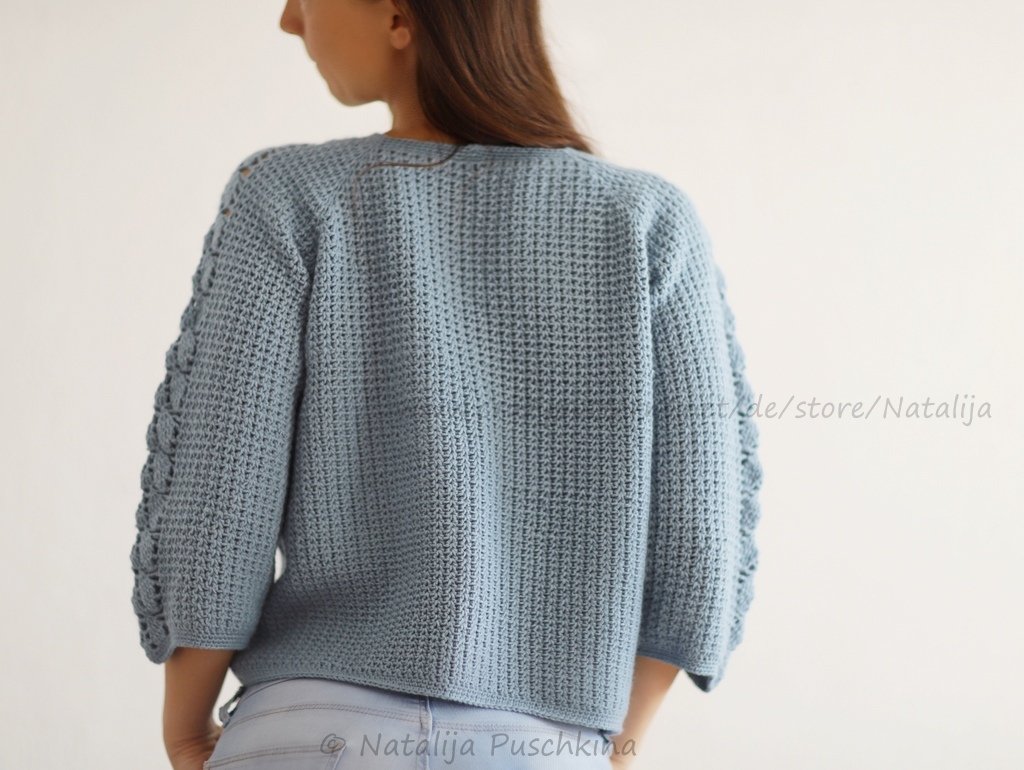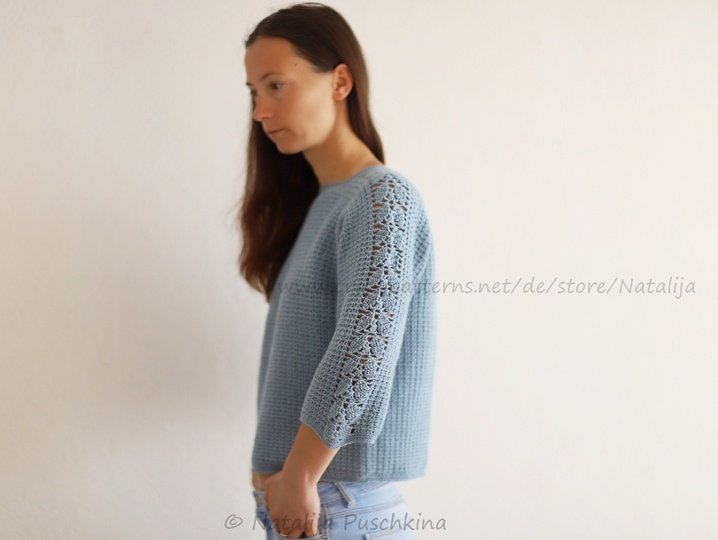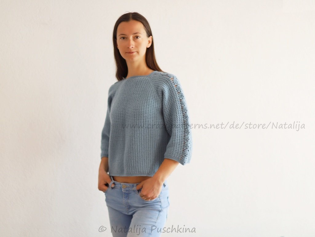 Verkauf der von Dir hergestellten Pullover ist möglich: Du darfst die Artikel, die Du mithilfe meiner Anleitung zum Häkeln von Pullover gefertigt hast, in beliebiger Stückzahl gewerblich verkaufen. Bitte den Hinweis: „Angefertigt nach dem E-Book von Natalija Puschkina https://www.crazypatterns.net/de/store/Natalija“ dazusetzen.
