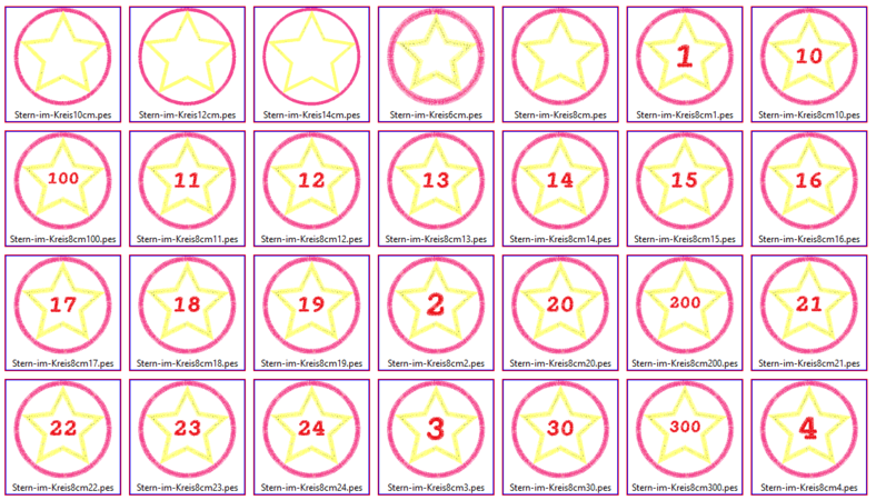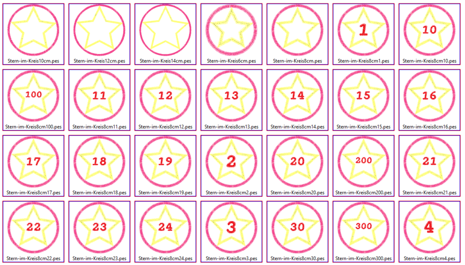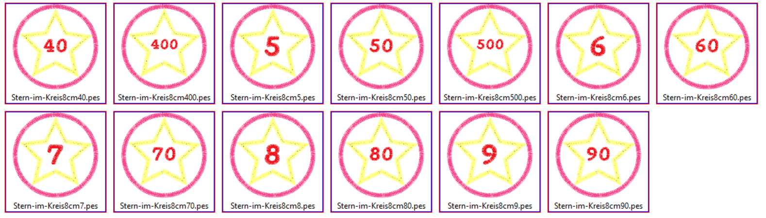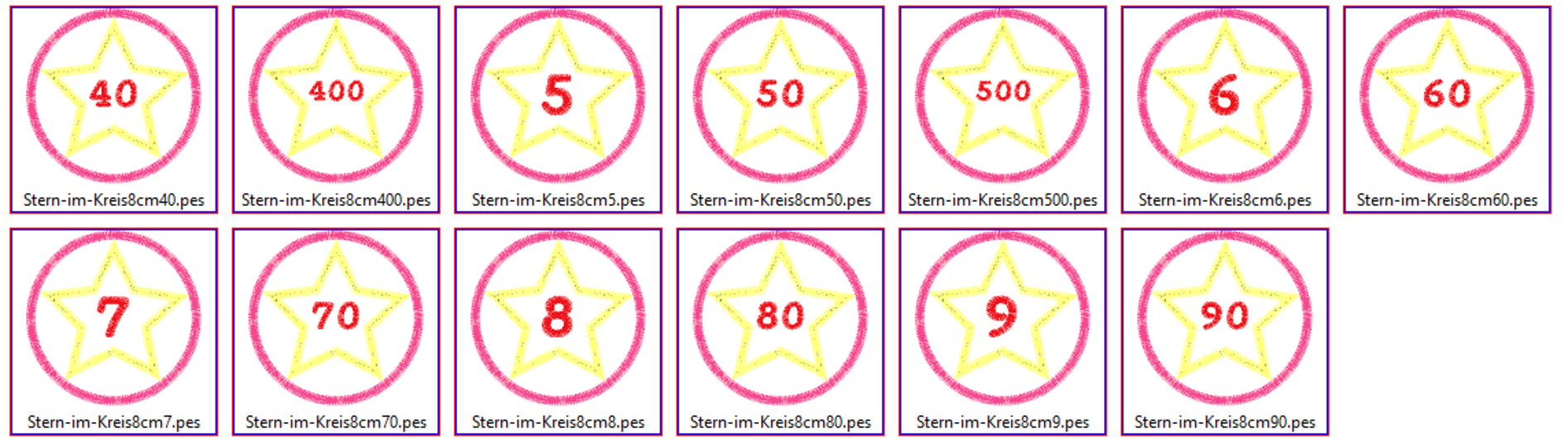 und zusätzlich die 8cm Größe mit den Zahlen 1-24 30 40 50 60 70 80 90 100 200 300 400 500