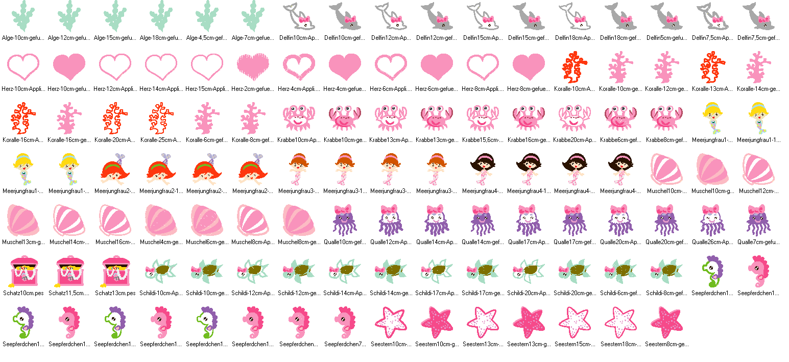 Stickdateiserie mit 15 verschiedenen Motiven in vielen Größen