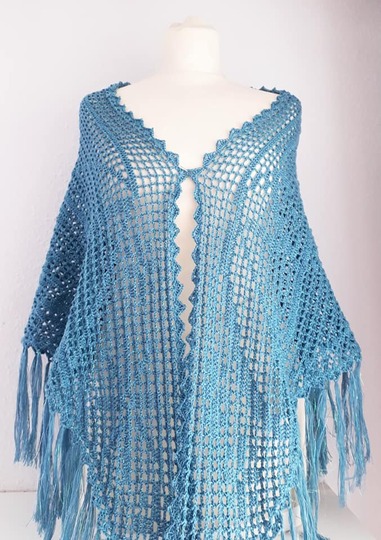Die Länge variiert von ungespannt 175 und 220 cm je nach Nadelstärke (3-4) und Häkelstärke.