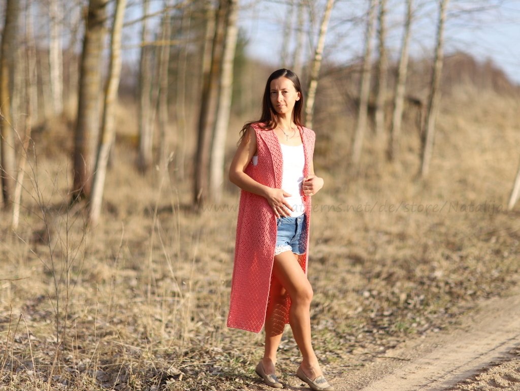 Verkauf der von Dir hergestellten Westen ist möglich: Du darfst die Artikel, die Du mithilfe meiner Anleitung zum Häkeln von Weste gefertigt hast, in beliebiger Stückzahl gewerblich verkaufen. Bitte den Hinweis: „Angefertigt nach dem E-Book von Natalija Puschkina https://www.crazypatterns.net/de/store/Natalija“ dazusetzen.
