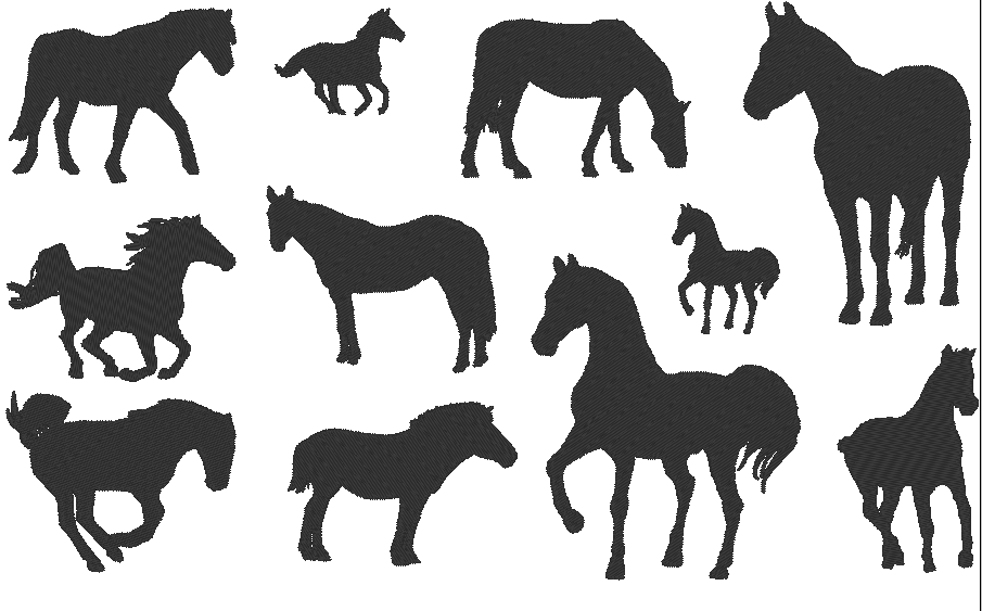 Stickdateiserie mit 10 verschiedenen Pferden in je 6 Größen