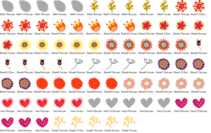 verschiedene Blumen, Herzen, Blätter und Zweige von in vielen Größen von 4-15 cm