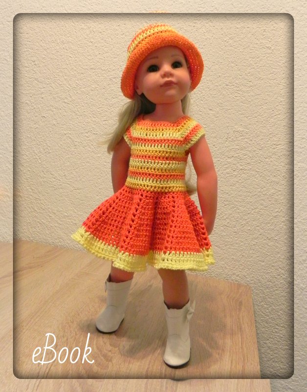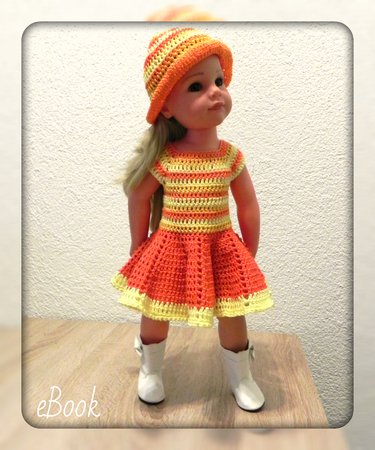 In der Anleitung wird es sehr ausführlich (mit Fotos zu jedem Schritt) erklärt wie Du ein Puppenkleid, ein Jäckchen, einen Rock und eine Mütze häkelst, viele Fotos helfen Dir dabei.