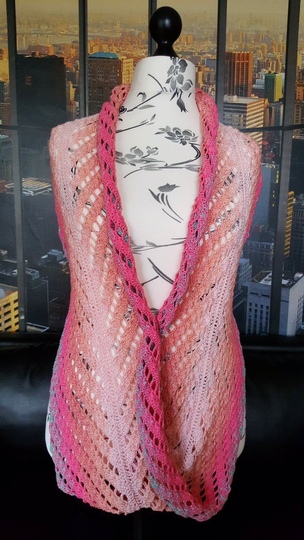 Verbraucht habe ich 1000m Scheepjes Whirl in der Farbe 'Rosewater Cocktail' und eine Nadelstärke 3,5.