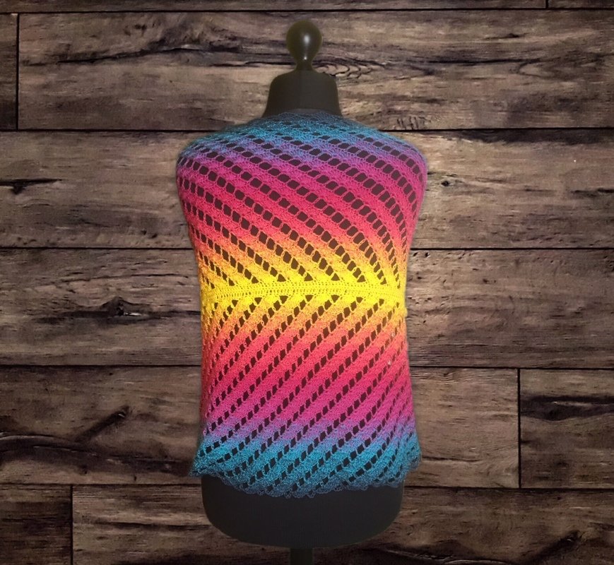 Man kann den Möbius entweder über die Schultern tragen oder um den Hals gewickelt.