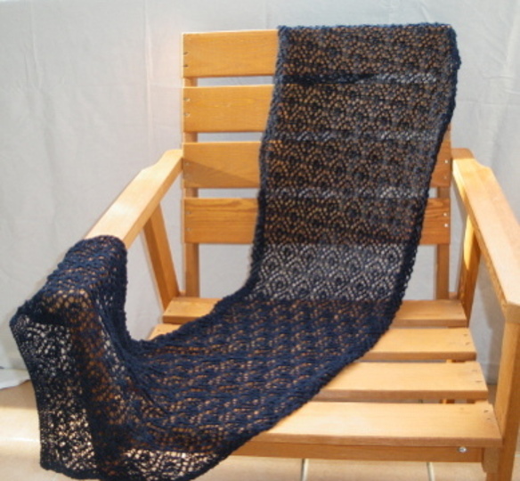 Den Musterschal habe ich aus 120 Gramm Lacegarn (500 m/100G.) gestrickt.