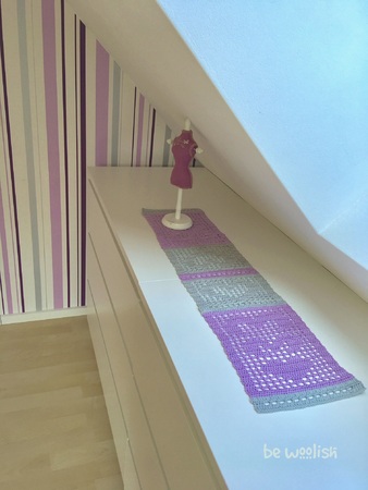 Dieser Herzläufer ist schnell gehäkelt und macht jeden Tisch oder Kommode zu einem Hingucker. Die Maße sind bei mir, mit angegebener Wolle (Schachnmayr Catania) und NS 3,0 ca. 75 x 20 cm. Die Länge kann aber ganz einfach verkürzt oder verlängert werden. Auch in der Farbgestaltung ist der Kreativität keine Grenzen gesetzt.