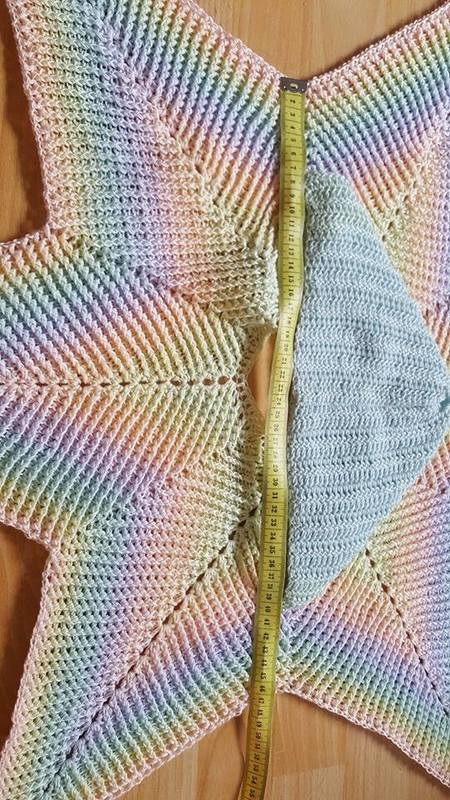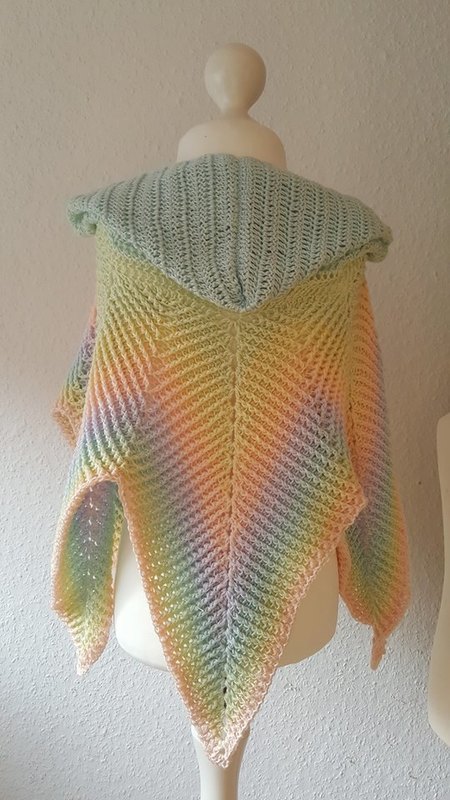 Es handelt sich um einen Poncho mit 6 Zacken der mit Stb oder aber mit vorderen und hinteren Reliefstäbchen gehäkelt werden kann. Anleitung von Kunterbunte Häkelsternchen.