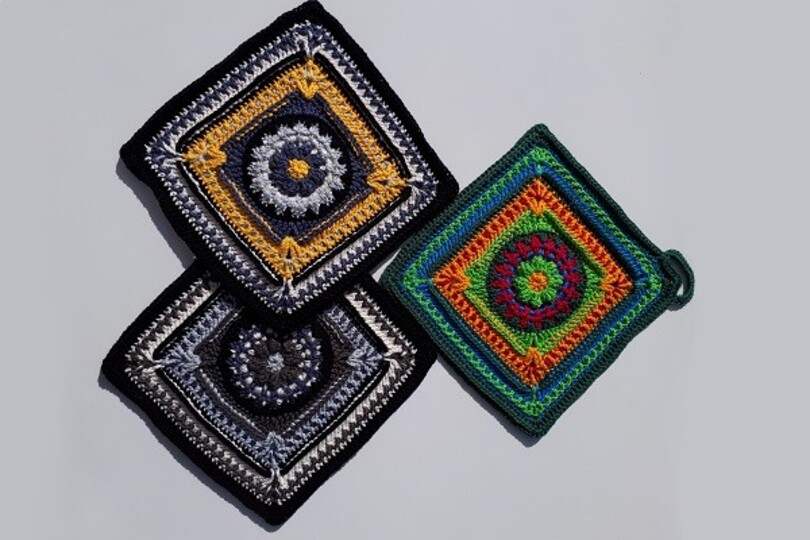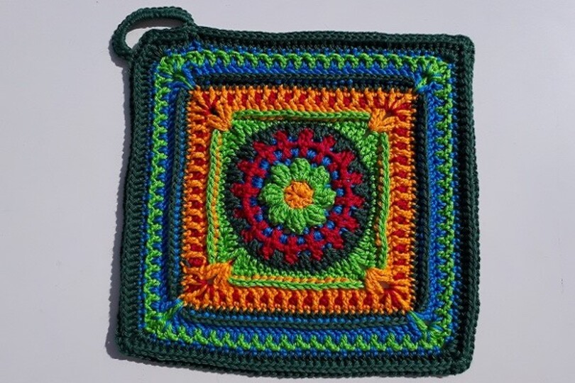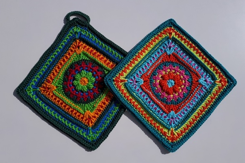 Verbrauch für 1 Topflappen in jeder Farbe weniger als 10 g von der äußeren Farbe 15 g