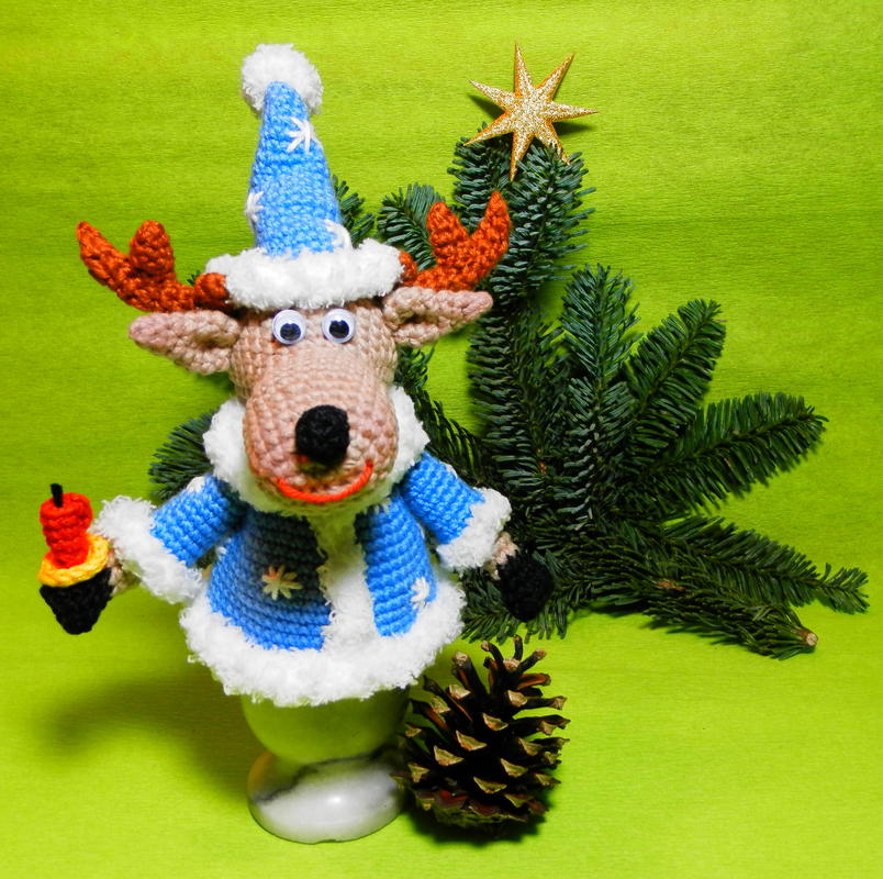 Die Höhe des fertigen Produktes beträgt ca. 15 cm. Das variiert natürlich je nach verwendeter Wollstärke sowie nach der Stärke der Häkelnadel.