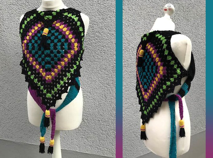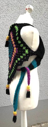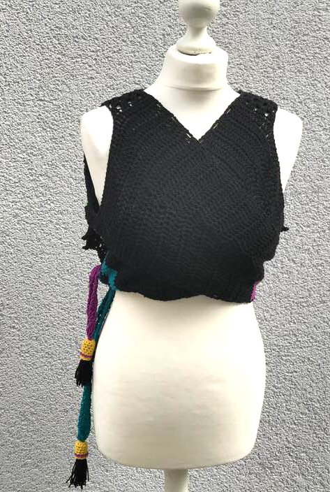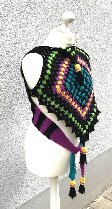 man kann es HINTEN knoten..VORNE verknoten..oder einfach nur so als kleine Weste über lange Kleider sieht das sehr hippiemäßig aus!