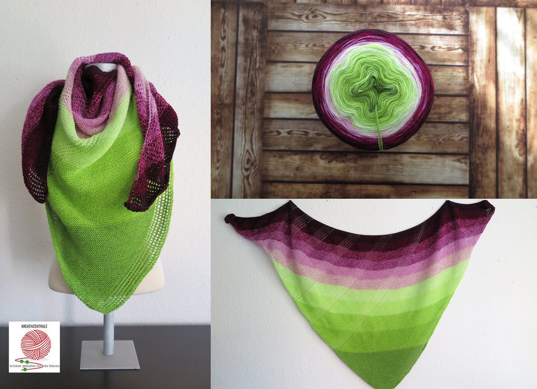 Das Stricktuch „Sommersegel“ ist ein Dreieckstuch, welches ideal für Farbverlaufsgarne ist, aber auch mit normaler oder handgefärbter Wolle gestrickt werden kann. Für dieses Stricktuch benötigt man Kenntnisse von rechten Maschen, wie man 2 Maschen rechts zusammenstrickt sowie Umschlägen und schon kann angenadelt werden.