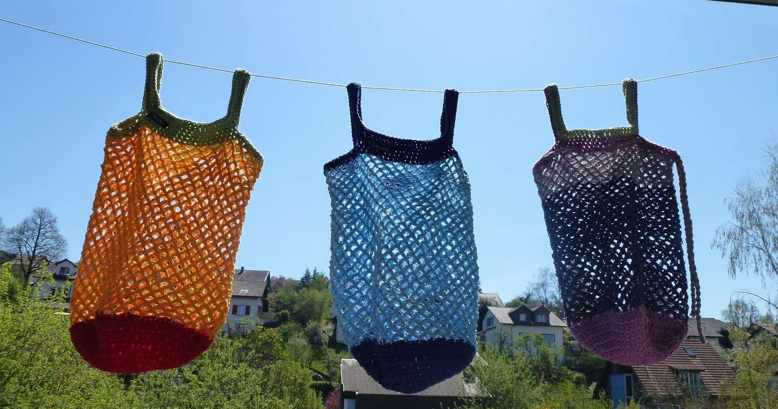 Die trendigen Netztaschen sind der ideale Begleiter. Sei es für den Einkauf, die Sandkastenutensilien oder für die Wolle.