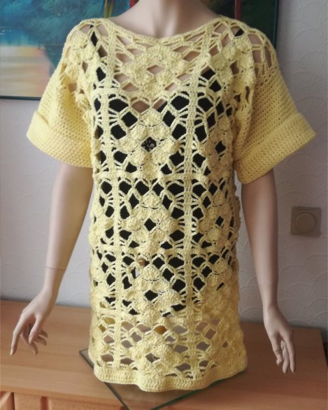 Das Shirt " Kanari “ kann wunderbar zu einem Rock, über einer Hose, oder am Strand über dem Bikini / Badeanzug getragen werden.