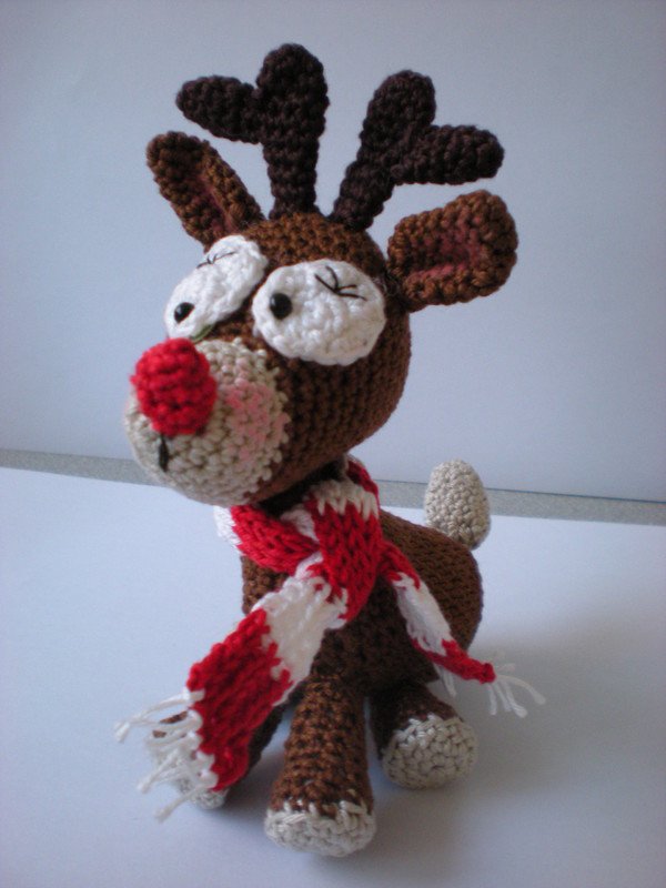 Der kleine Rudi ist gehäkelt, der Schal, den er in dieser Jahreszeit braucht, ist gestrickt. Du solltest Luftmaschen, Wendeluftmaschen, feste Maschen, Kettmaschen und halbe Stäbchen und Stäbchen beherrschen, für den Schal linke und rechte Maschen.