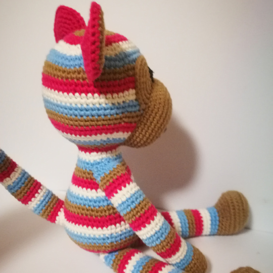 Häkelanleitung für den lustigen, farbenfrohen Affen Louis. Louis liebt es mit den Kindern zu Kuscheln und diese zum Lachen zu bringen. Größe vom Kopf bis zu den Fußspitzen ca. 36cm.