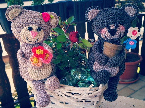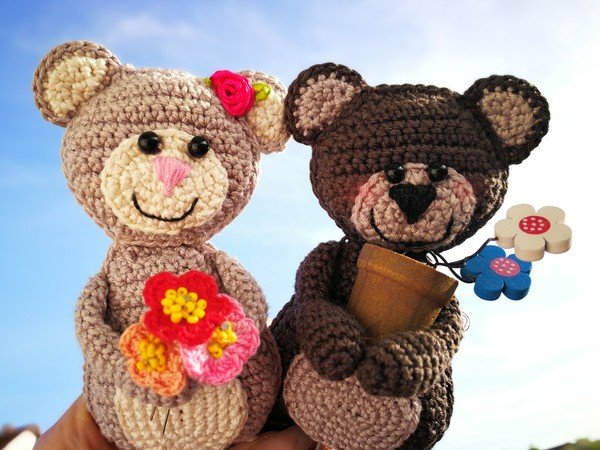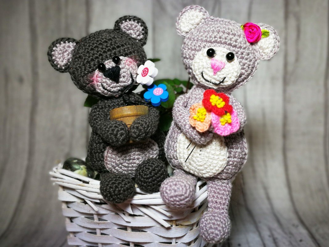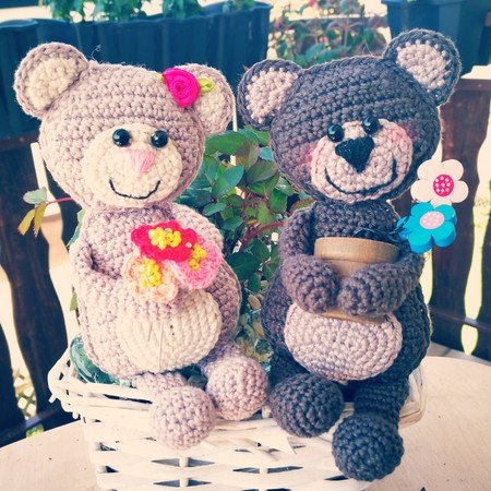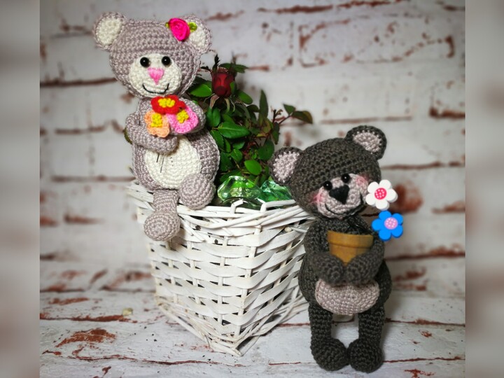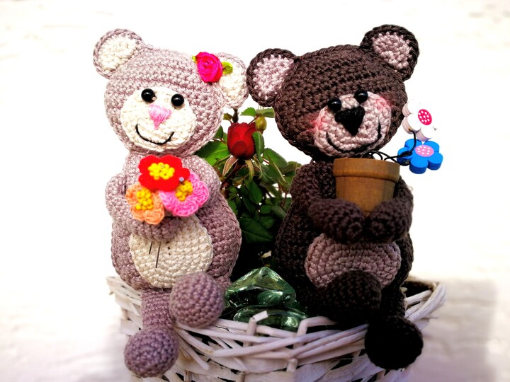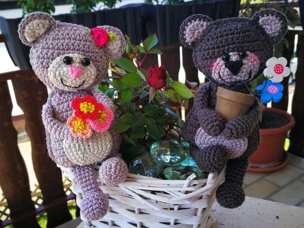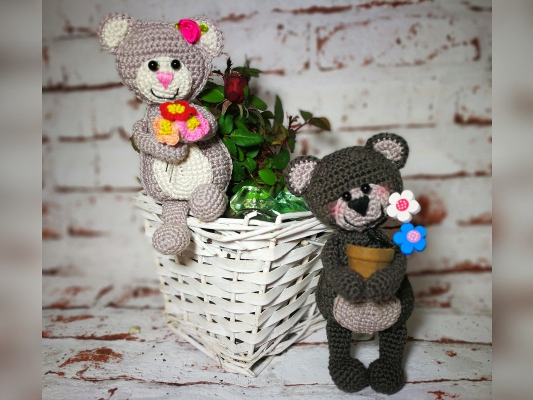 Zuckersüßes Bärchen Pärchen mit Blumen