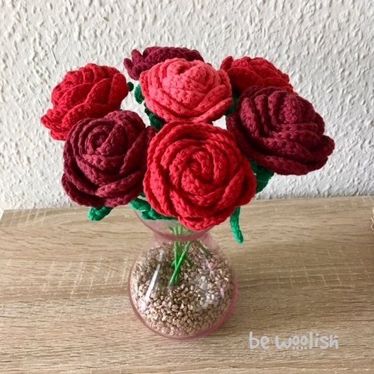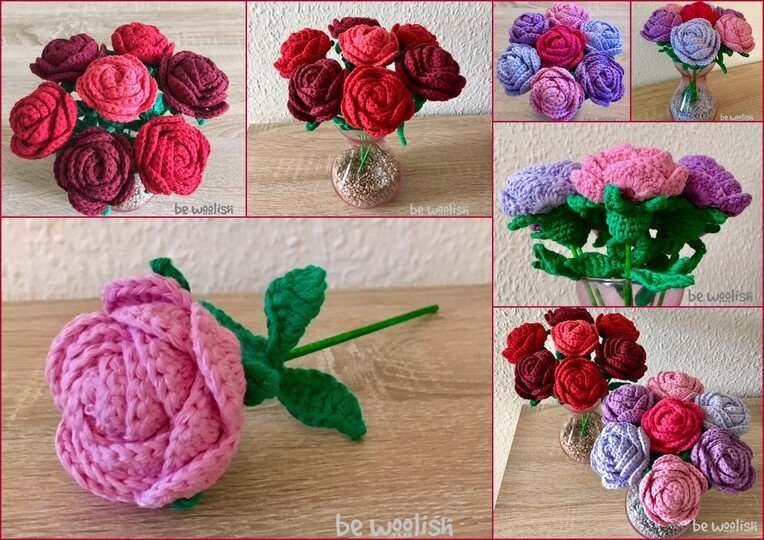 Die Rose ist ideal zum Muttertag, Valentinstag, Geburtstag oder einfach als kleines Mitbringsel für einen lieben Menschen. Mehrere Rosen als Strauß in einer Vase sind zudem auch eine wunderschöne Deko,die nie verblüht. Da man nur geringe Mengen Wolle benötigt, ist sie auch die perfekte Lösung für die Wollrestetruhe.