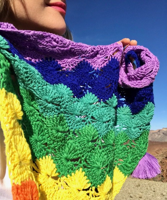 ❤ Sieben Chakras Tuch als Anleitung (PDF) professionell bebildert und ins kleinste Detail Schritt für Schritt dokumentiert. Damit kannst Du super schnell und einfach dieses bunte Tuch in drei Größen häkeln!