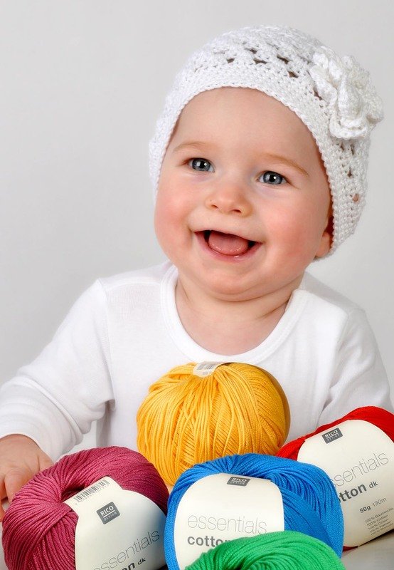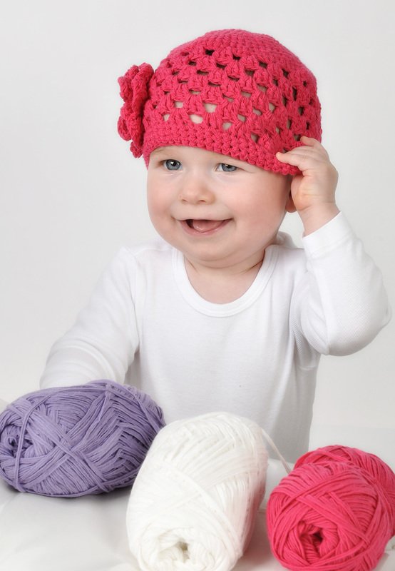 Diese Mütze ist mit Baumwollgarn gehäkelt. In der Anleitung findest du die nötigen Materialangaben.