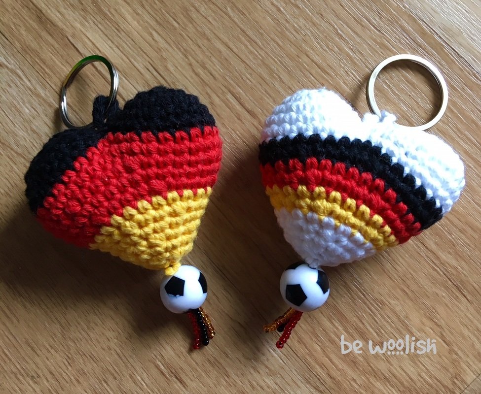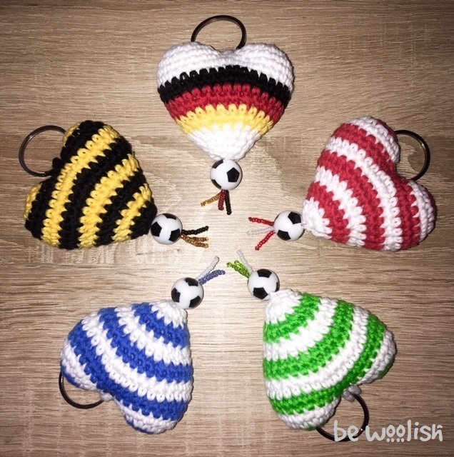 Das Geschenk für Fußballfans. Super geeignet als Schlüsselanhänger, als Anhänger für den Rückspiegel oder als kleines Mitbringsel zum Vatertag. Da man nur geringe Mengen Wolle benötigt, ist es auch die perfekte Lösung für die Wollrestetruhe.