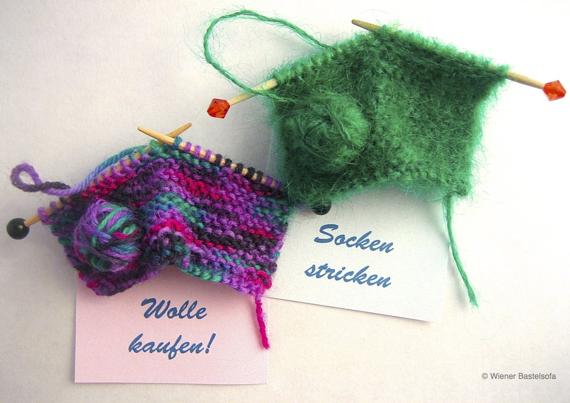 Ein toller Blickfang für alle Strickfans! Stilvoller kannst du deine Notizen wirklich nicht anbringen. Die Kühlschrankmagnete „Strickzeug“ sind schnell angefertigt und eignen sich wunderbar zum Verwerten von Resten.