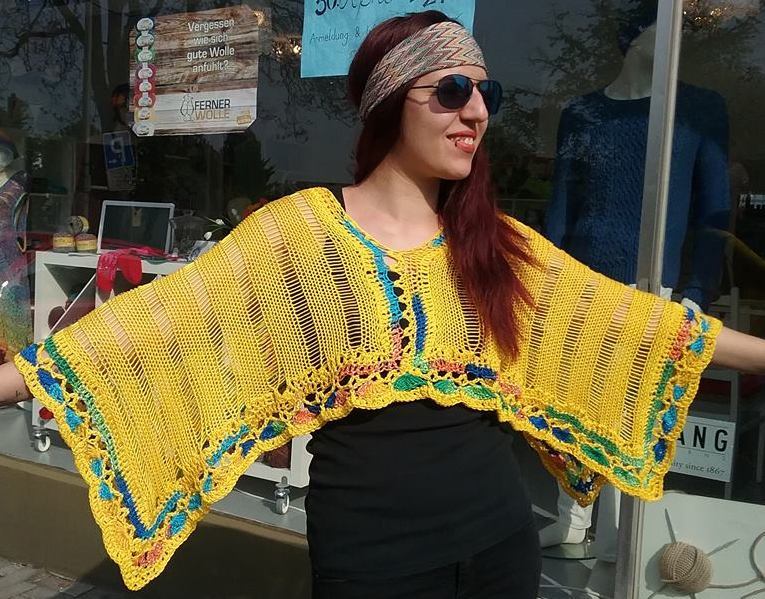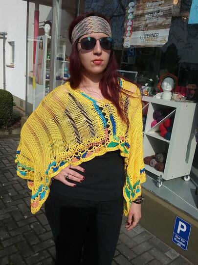 Die Festivalsaison ruft! Zeit für einen knalligen, luftigen Blickfang! Wendeponcho für fröhliche Tage aus Adriafil "Memphis" und "Kimera" (100% Baumwolle)