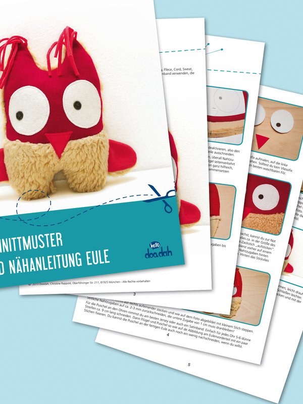 Dicke gemütliche Eule zum Selbernähen. Die Vorlage enthält das Schnittmuster und eine ausführliche, leicht verständliche Nähanleitung mit vielen Abbildungen.