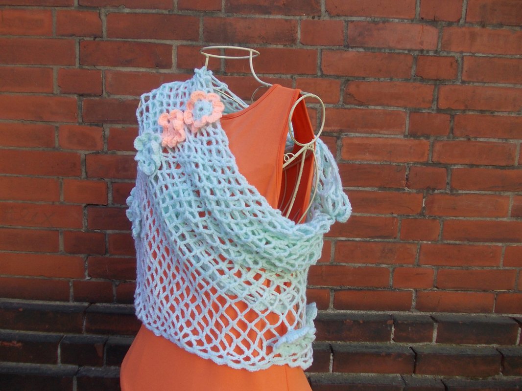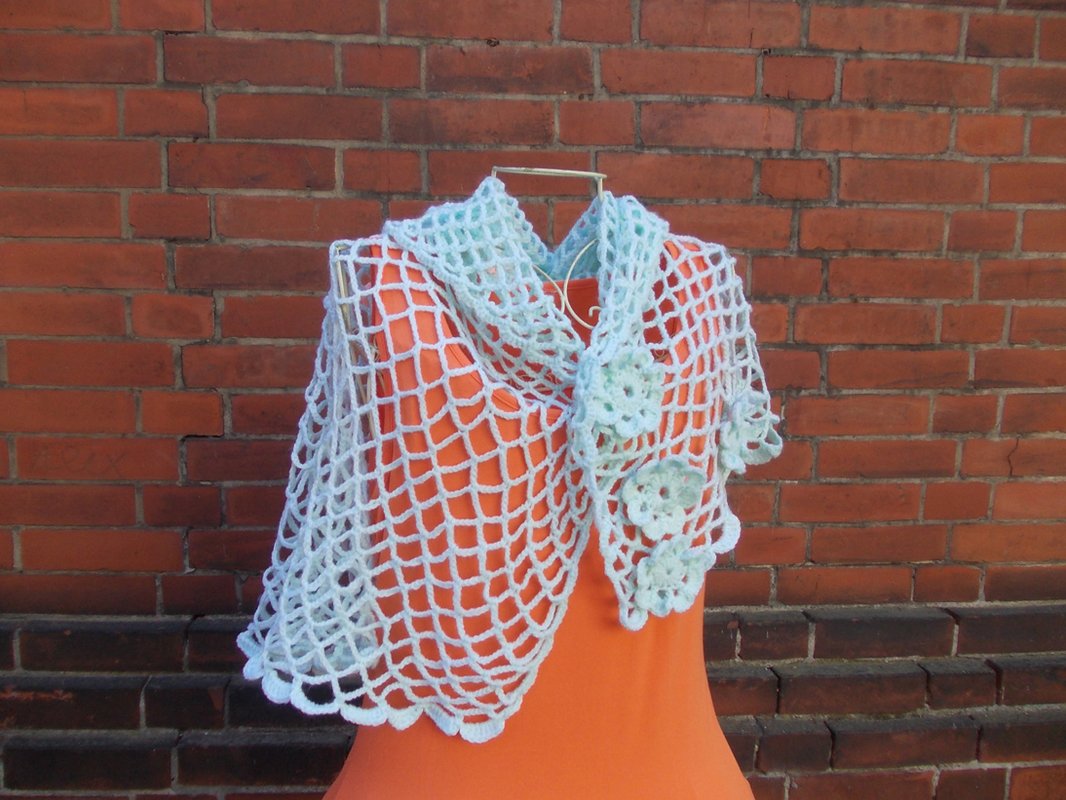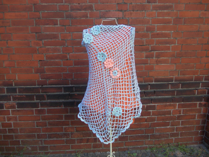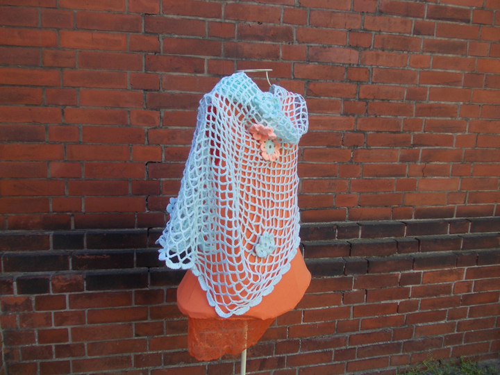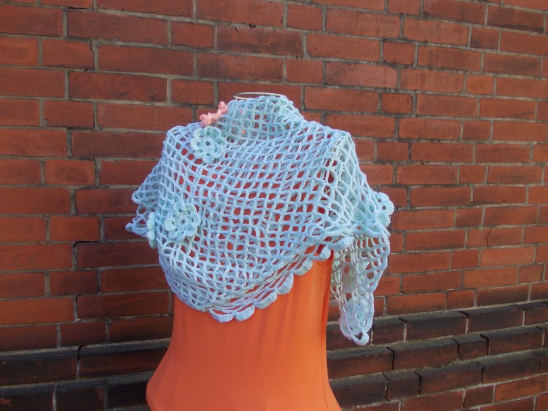Design and Copyright by lessigfashion: Dreiecktuch, Stola, Kopfschmuck mit Häkelblumen, VIELE TRAGEVARIANTEN (siehe Bilder zum Artikel)