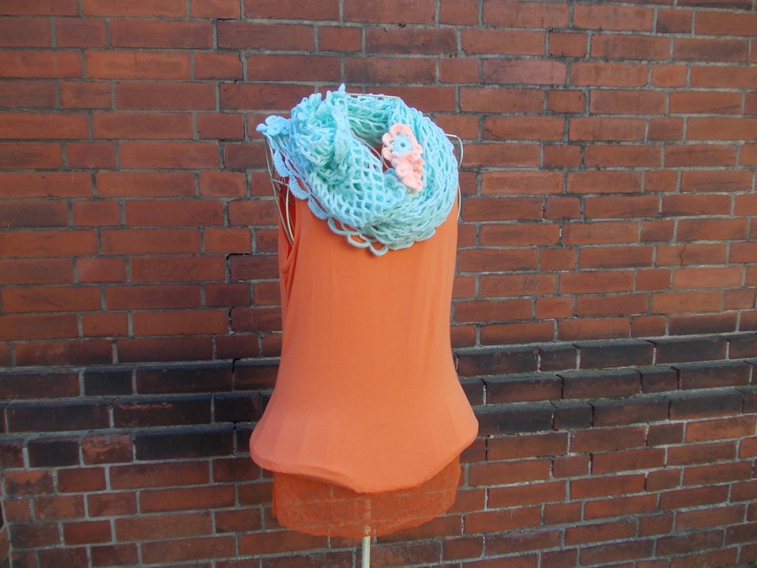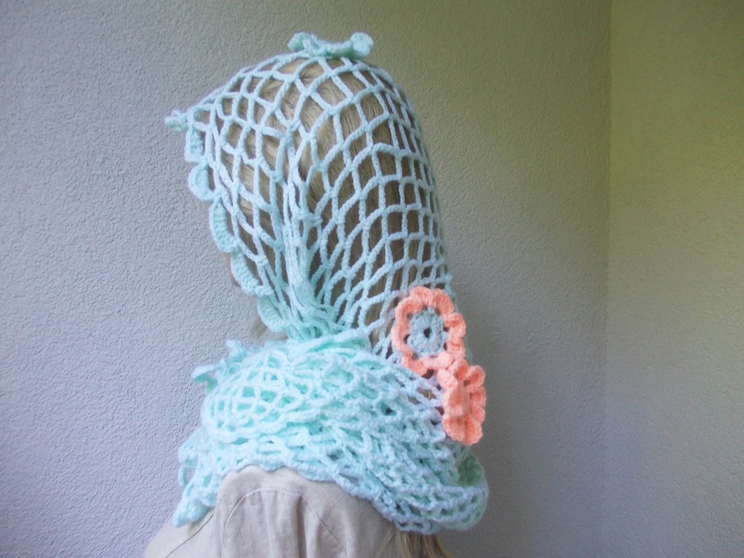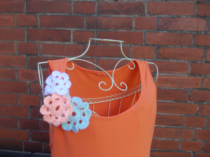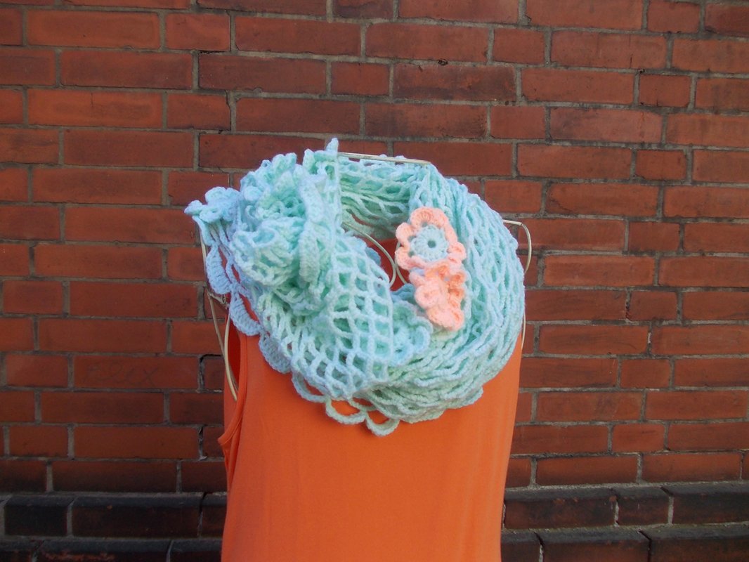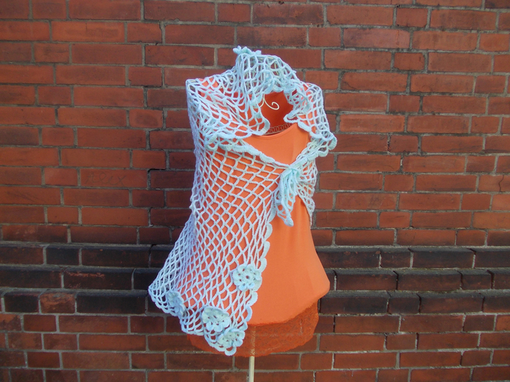 Design and Copyright by lessigfashion: Dreiecktuch, Stola, Kopfschmuck mit Häkelblumen, VIELE TRAGEVARIANTEN (siehe Bilder zum Artikel)