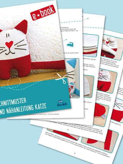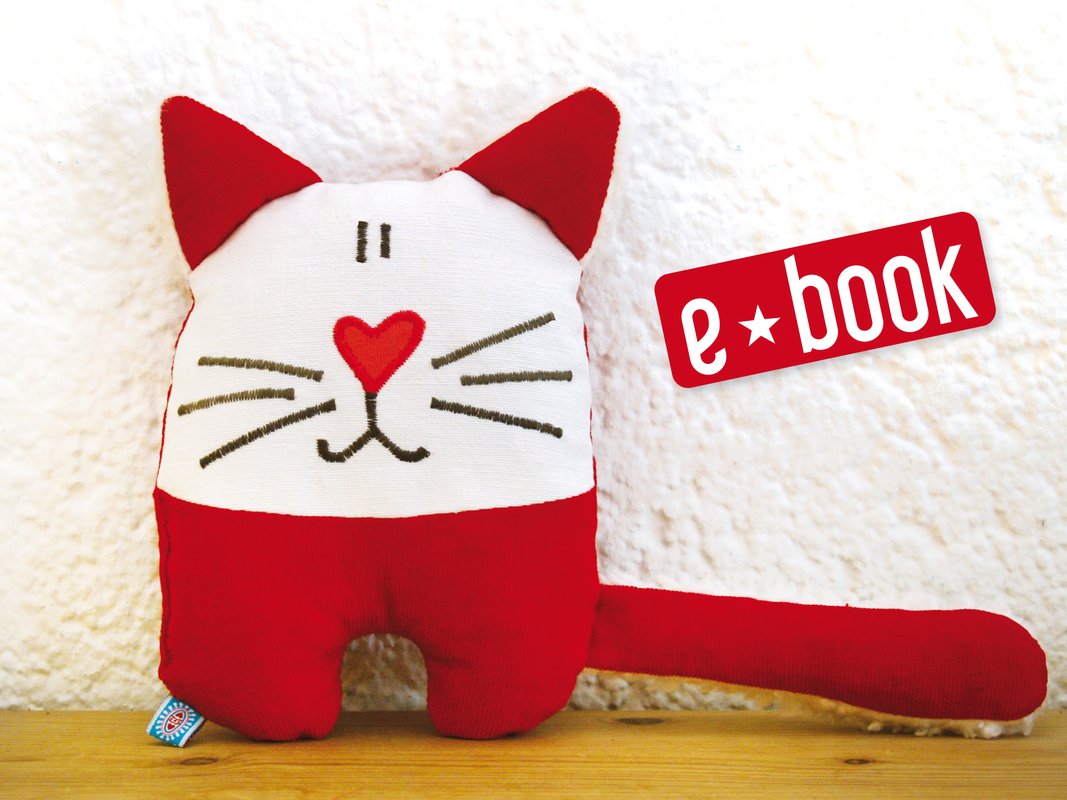 Süße, dicke Kuschelkatze zum selber nähen. Die Vorlage enthält das Schnittmuster und eine ausführliche, leicht verständliche Nähanleitung mit vielen Abbildungen.