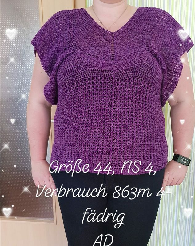 Das etwas Shirt. Die Tunika wird aus 6 Teilen gehäkelt