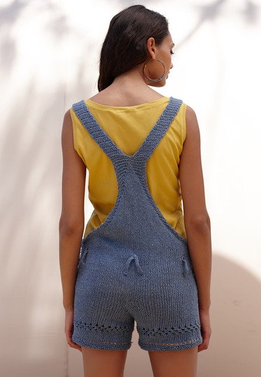 Supersüß und superniedlich - die kurze Latzhose im Jeans-Stil gehört zu den Streetstyle-Basics. Gestrickte Coolness mit verwaschener Optik und typischen Jeans-Details.
