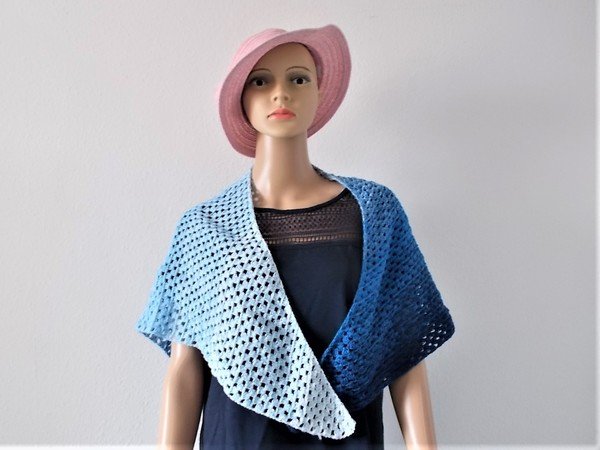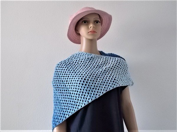 Ein Dreiecktuch in schönem weiß-blauen Farbverlauf, toll zu Jeans und weißer Kleidung