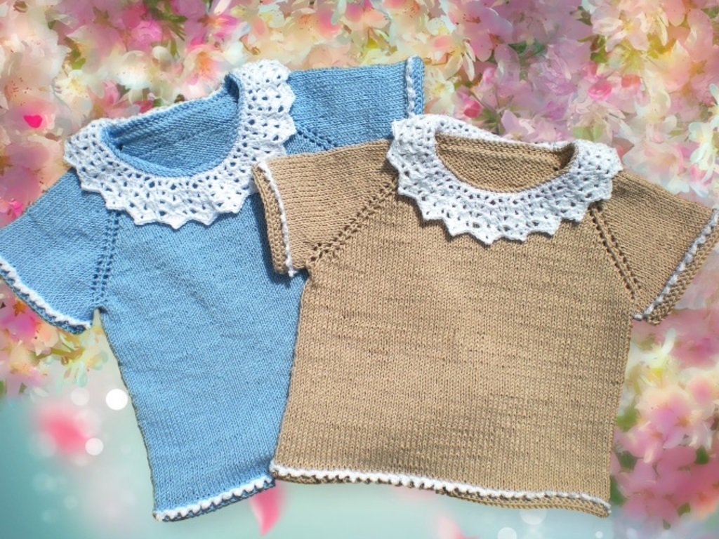 So ein süßer Sommerpulli aus Baumwolle ist genau richtig für kleine Mädchen. Er sieht zum Rock genauso toll aus, wie zur Jeans. Man kann ihn natürlich auch aus Wolle und mit langen Ärmeln stricken, dann ist er ein toller Pullover für die kältere Jahreszeit.