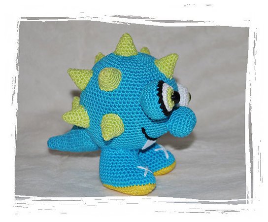 Das Monster Stampfi wird, wenn Du das angegebene Material verwendest, ca. 16cm x 17cm groß.