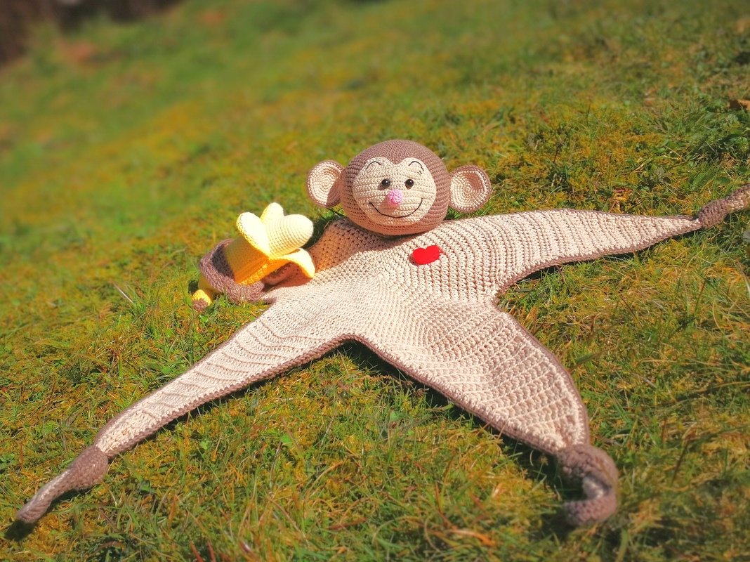 Dieses Schmuseäffchen ist der perfekten Begleiter um die Welt zu entdecken, es fördern Babys Sinne durch knistern und rasseln. Das niedliche Äffchen wird zum treuen Begleiter, Tröster und Einschlafhelfer, denn es riecht so schön vertraut nach Mama und Papa.
