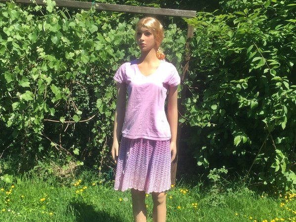 Ich habe in meinem Beispiel einen Rock gearbeitet, der in den Größe 36-40 passt. Durch das eingezogene Bindebändchen ist der Rock so variabel in der Größe! Sie können durch einfache Anpassung einen Rock in wirklich jeder gewünschten Größe arbeiten bzw. jedes andere Garn verwenden.