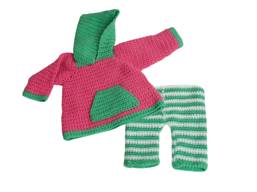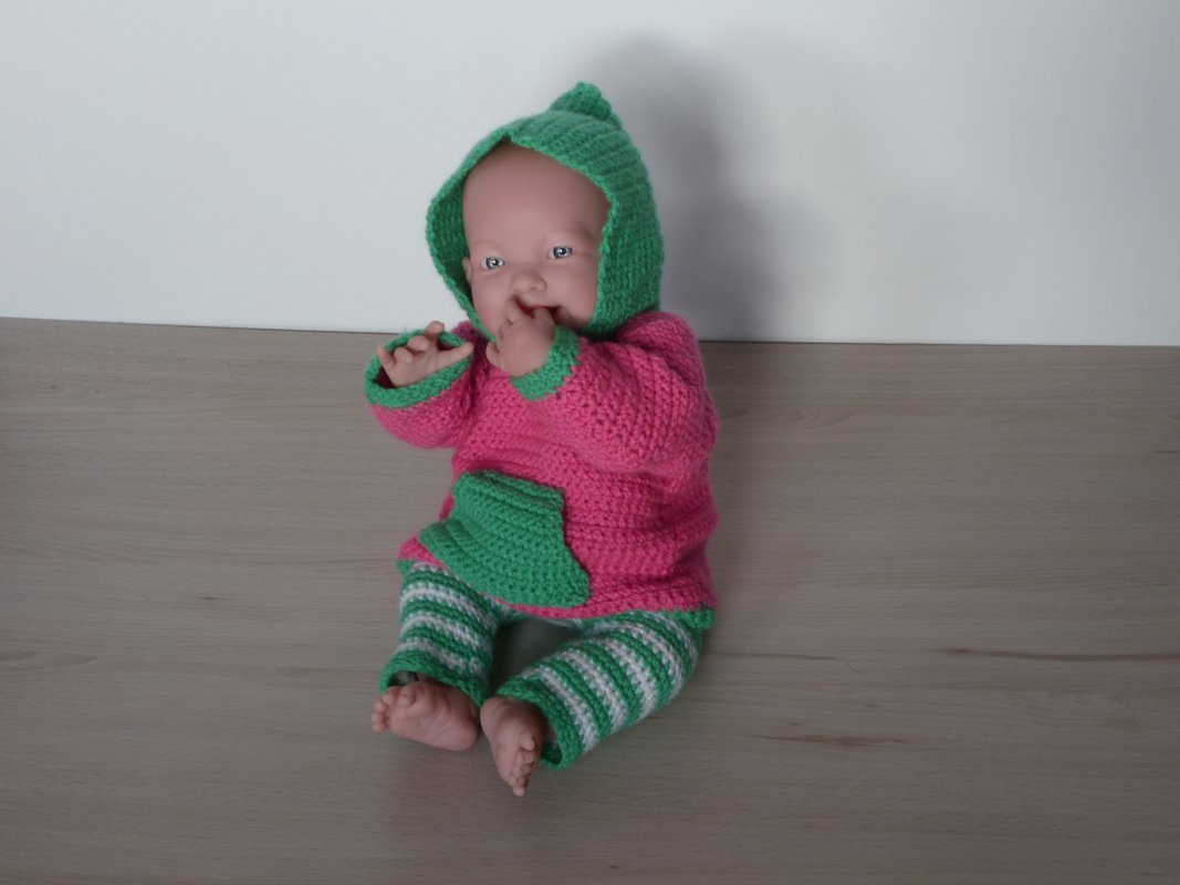 Am Abend wird es kühl draußen und die Kleinen sollen einen Pullover drüber ziehen. Natürlich brauch die kleine Püppi auch einen Pullover.