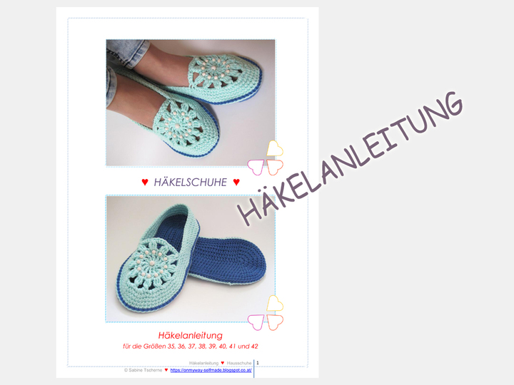 ♥ Die Häkelanleitung ist für Hausschuhe in den 8 Größen: 35, 36, 37, 38, 39, 40, 41, 42