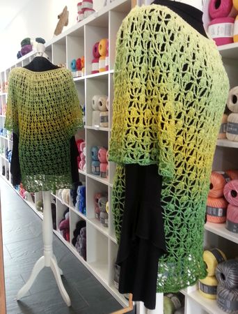 Das Shirt wird in Runden von oben nach unten gehäkelt.