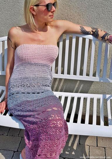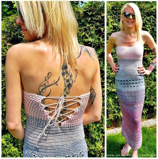 > sicher kann dieses Häkelkleid auch gerne in anderer (Baum-)Wolle gearbeitet werden