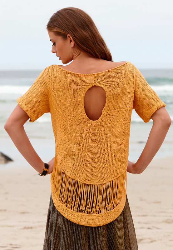 Ein absoluter Eyecatcher! Ja, dieser Pulli steckt voller kreativer Ideen. Er strahlt in einem sonnigen Gelbton, Cut-out und Fallmaschenrand setzen raffinierte Akzente!