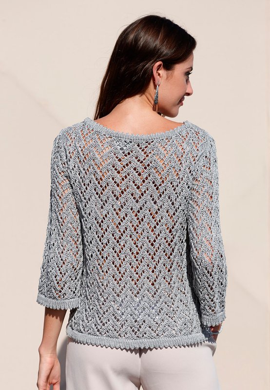 Luftig und transparent! Die zarte Lochstrick-Optik und der entspannte Schnitt dieses silbergrauen Pullis verstärken dieses leichte Gefühl noch.
